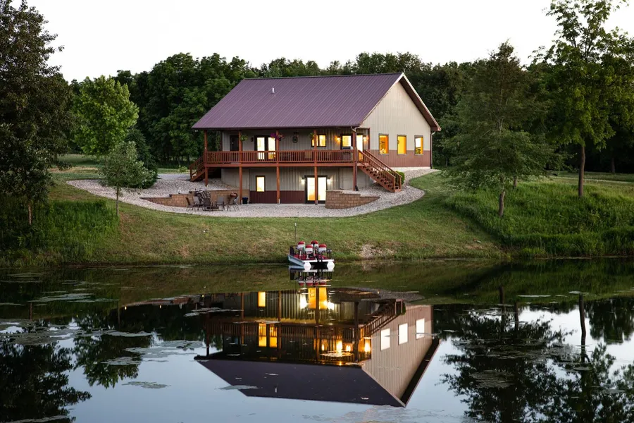 Escape to your own piece of paradise with this beautifully maintained, Amish-built cabin-style home boasting breathtaking water views from every window! Nestled between two stocked ponds brimming with trophy bass, bluegills, red-ear sunfish, and channel catfish, this 3,200 square foot haven offers a serene retreat in the heart of nature.
