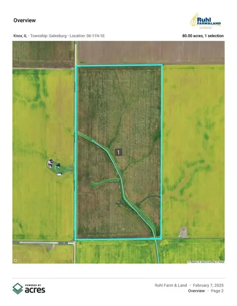 High quality farm with productive soils and good drainage on the Knox County and Warren County line just 1 mile north of the Galesburg Airport on W. Knox Rd. This farm sits on a hard road to the corner of the property and boasts a 140.2 PI rating with predominant soils being Osco Silt Loam and Ipava Silt Loam. 76.4 tillable acres with 3.6 acres of well maintained water way. This ground has been meticulously cared for over the years with solid conservation practices. 2024 beans yielded 57 bushel per acre, but most years produce yields in the mid 60's. 2023 corn yielded 250 bushel per acre. Soil tests from 2023 are available. Tenant rights through the 2025 crop year. Ground can be open for the 2026 crop year. Current tenant is related to seller and would entertain continuing to lease the ground.