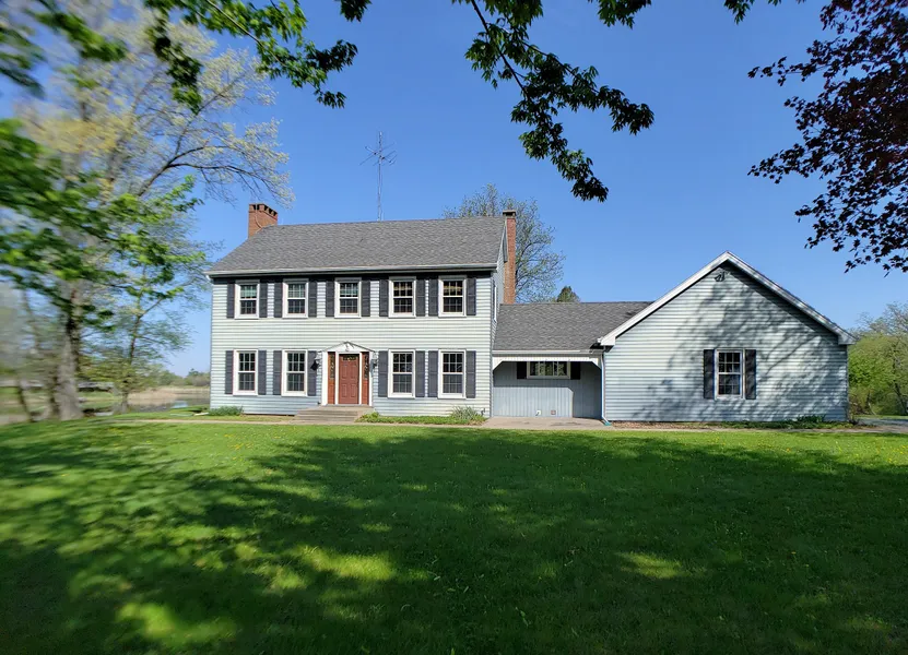 Lovely 2 story 4 bedroom home in a country setting on 5.8 acres with pond. Beautiful deck view overlooking pond perfect for your next cook out! Large main level boasts elegant formal living and dining room. Pass through fireplace from family room to large spacious kitchen. Second level offers 4 bedrooms plus full bath. So much space, INDOORS AND OUT!!