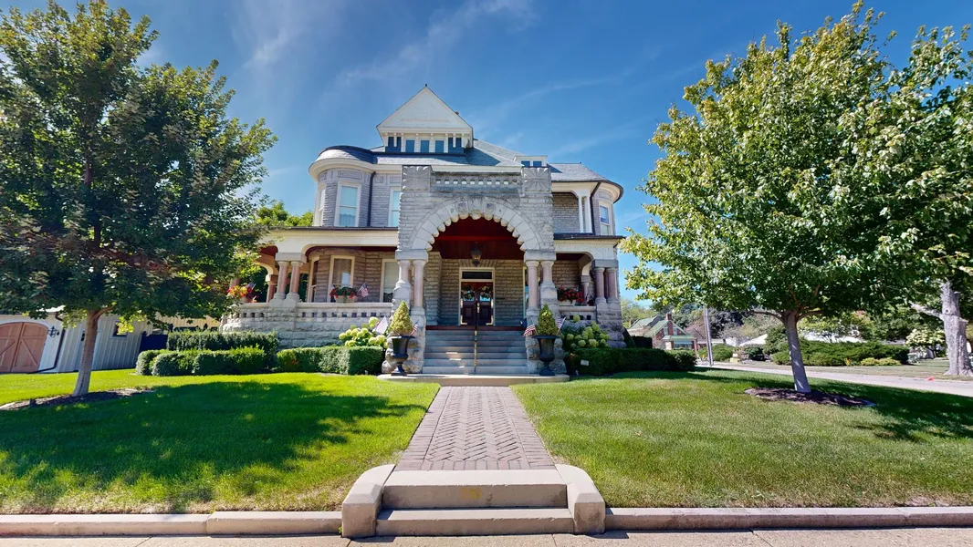Welcome to the prestigious George Lawrence Home, a masterpiece of historical elegance and modern luxury, nestled in the heart of Galesburg, IL. Built in 1897 and recognized as a registered historic landmark, this extraordinary property has been lovingly restored to preserve its rich heritage while offering the finest in contemporary living. From the moment you step onto the property, you'll be captivated by its timeless charm, complete with impeccably landscaped grounds, a stunning 18' x 36' heated inground pool, and a beautifully secluded backyard surrounded by a 7-foot cedar and vinyl privacy fence. This architectural gem has undergone a comprehensive renovation by skilled craftsmen from across the Midwest, seamlessly blending original details with top-of-the-line amenities. The main residence boasts over 10-foot ceilings on all three floors, a modern elevator, and meticulously restored woodwork, including maple, cherry, alder, and quartersawn oak trim. With 78 windows-most of which have been replaced with historically accurate Marvin windows-the home is bathed in natural light, highlighting the exquisite craftsmanship throughout. The gourmet kitchen is a chef's dream, featuring high-end alder and mahogany cabinetry, luxurious soapstone and Danby marble countertops, and an Officine Gullo cooking suite, all complemented by a spacious butler's pantry. The second floor offers three generous bedrooms, each with its own private bath, including an opulent master suite with his-and-hers bathrooms, marble floors, custom cabinetry, and a relaxing slipper tub. The third floor is a versatile space, perfect for a play area or additional living quarters. Every corner of this home is adorned with luxury finishes, including hand-carved wet bars, plaster ceiling motifs, and designer lighting fixtures by Schoenbeck and Visual Comfort. In addition to the main house, the estate includes the original stone carriage house, fully updated in 2020 with new electrical, plumbing, and HVAC. The carriage house's second floor features a beautifully appointed living space with a full bath, bedroom, and art studio, offering endless possibilities. The two newer garages, meticulously designed to replicate the historic aesthetic of the home, provide ample heated space for vehicles, workshops, and storage, including room for car lifts, catering to auto enthusiasts. No detail has been overlooked in this spectacular estate. From copper gutters, slate roofs, and custom carriage doors to a whole-home sound system, reverse osmosis water filtration, and a full-house generator, this home marries historic beauty with modern convenience. The George Lawrence Home is not just a place to live-it's an extraordinary lifestyle experience, a rare opportunity to own a piece of history that has been thoughtfully enhanced for today's discerning homeowner. Truly, this is a home where every detail speaks to elegance, comfort, and timeless sophistication.