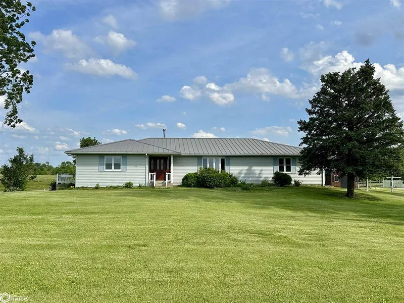Nestled on a sprawling 5-acre lot, this charming 3-bedroom, 3-bathroom ranch offers a perfect blend of comfort and versatility. The main floor features three spacious bedrooms, including a primary suite with a master bath and a small private deck, ideal for morning coffee or unwinding in the evening. An additional full bath serves the other two bedrooms. The large eat-in kitchen, complete with a cozy breakfast nook, flows seamlessly into the dining room area, which boasts sliding glass doors leading to a generous deck overlooking the scenic acreage. The walk-out basement is a standout feature, opening to a patio area and providing additional living space. It includes three non-conforming bedrooms or office spaces, a second full kitchen, and a third full bath. This lower level also features a large living and entertainment area, perfect for hosting gatherings or creating a private retrea...