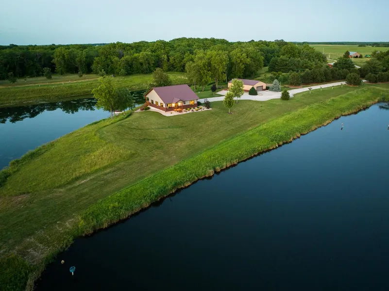 Escape to your own piece of paradise with this beautifully maintained, Amish-built cabin-style home boasting breathtaking water views from every window! Nestled between two stocked ponds brimming with trophy bass, bluegills, red-ear sunfish, and channel catfish, this 3,200 square foot haven offers a serene retreat in the heart of nature.