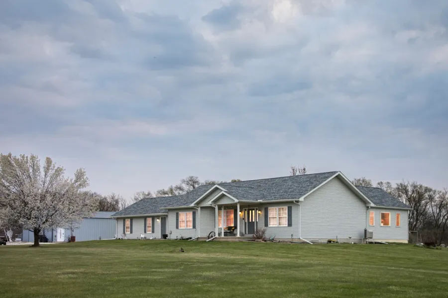 At the heart of the property is a spacious ranch-style home offering 2,005 finished square feet, including a large 2018 addition with a full basement underneath. The open floor plan features vaulted ceilings in the kitchen, living, and family rooms, plus a cozy gas fireplace for those crisp fall evenings. You'll love the warm tones of the hickory kitchen cabinets and vanities, laminate wood flooring in the main living areas, and a private primary suite with whirlpool tub and walk-in shower. Three additional bedrooms (one non-conforming), two more full baths, and a partially finished basement provide plenty of flexible space for family or guests. An attached 2-car garage adds everyday convenience.