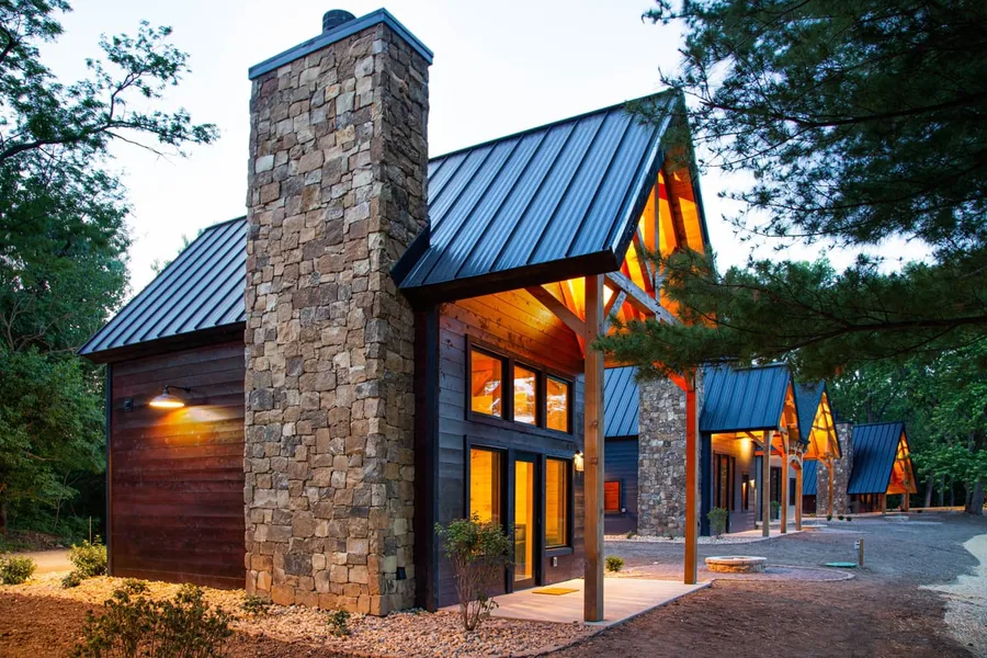 Nestled on 170+/- acres of lakes and timber in Knox County Illinois, near the Oak Run Lake community. Dragonfly Lakes is an exclusive luxury resort designed for rustic charm connected to nature with luxury appointments. The 20 timberframe cabins are fully furnished with highspeed internet and overlook 1 of the large stocked lakes. The cabins are fully furnished and equipped with a woodburning fireplace and an outdoor fire pit.