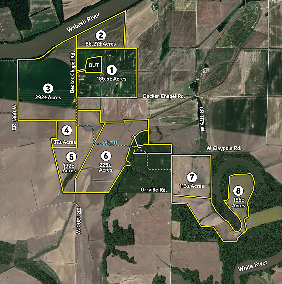 Tract 8: 156 AC; Mostly tillable acres; frontage along S. White River Road