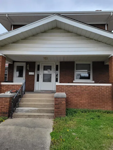 This brick 2 story home has a lot of potential! There is a spacious, covered front porch that welcomes you. The main level has an open entry/living room/dining room and then leads into the kitchen and bedroom areas. Upstairs is another living room, kitchen, and bathroom. The home does have a basement for extra storage. There is a detached 1 car garage out back.