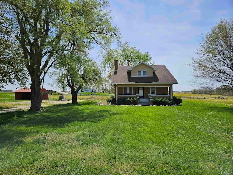 Check out this Rural Craftsman Style Home in a great location! This home is packed with character with a covered front porch to swing on, original hardwoods and millwork throughout the home, Fireplace in the living room, and the list goes on. This home has formal dining room, main floor laundry, and a main floor primary bedroom. Upstairs, there are 2 more bedrooms with large connecting closet and a flex room that would be a great office or play room! The home has a full basement with tall ceilings for storage or to finish out for more living space! The property has an attached carport, an additional detached carport, and a 20x20 pole building that needs your finishing touches! Septic system replaced in 2021, with Water Heater and Well Pump replaced in 2024! This home is to be sold as-is and priced accordingly!