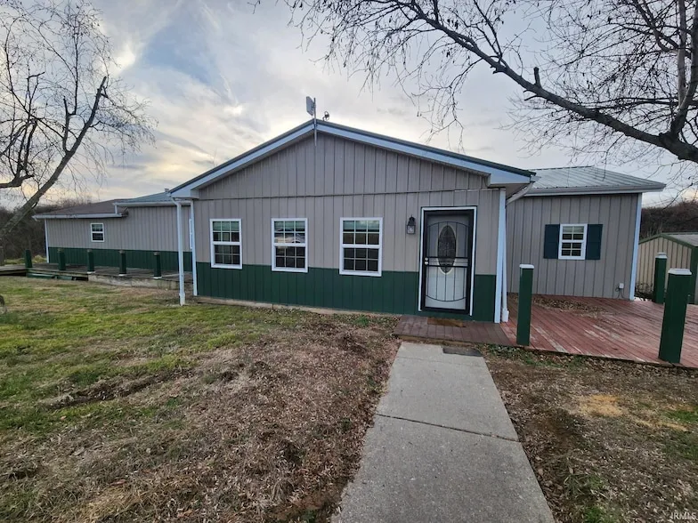 Enjoy just over an acre in a beautiful country setting. This home has so much to offer in terms of its spacious size, its detached pole barn garage AND the land / property! In addition to the stunning sunrise and sunset views, included in this 3 BR/3 Bath residence is two large primary bedrooms with private ensuite bathrooms featuring updated walk-in showers. Large open area for kitchen and dining space-perfect for entertaining. Beautiful hardwood floors, updated kitchen with island, and wood-burning fireplace in the primary bedroom that adds to the charm of this home. Heated by wood burning stove, which is a great cost-saving feature. Large pole barn garage with overhead doors as well as an additional storage shed. Ready for the cosmetic updates for you to make this large and spacious house your home!