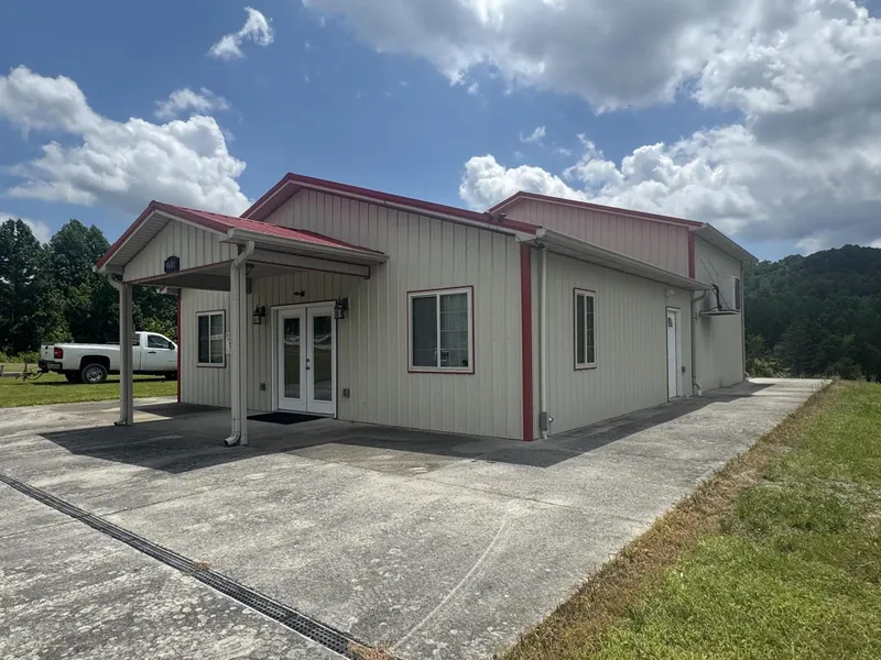 Business Opportunity already set up! Nice building with 2 offices 10'3'X11'3' each, large open space in between. Kitchen, 2 Bath 1 full w/shower and 1 half. Utility Room with sink, plumbed for washer dryer and rough in for water fountain. Large garage workshop on back 31'3'X21'3' with 10' tall garage door and 12'wide. Separate garage building and 2 awning buildings.