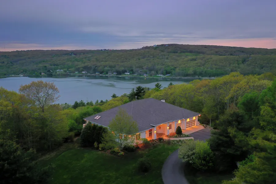 This spacious hillside home greets you with warmth, light and spectacular views.After a high-quality renovation completed this year, the house combines casualelegance with a comfortable and practical floorplan ideal for both day-to-dayliving and entertaining. The entry hall introduces a sense of space, light, andclean lines that brings a sense of serenity to the entire home.The gallery brings you to the living room, a large dining area, and chef's kitchen,all surrounded by windows open to views of Chickawaukie Pond, DodgeMountain, and hills extending to the horizon. This main living area includes awood-burning fireplace and a 65'' Samsung Frame TV that can screen art frommuseums around the world. The kitchen, lit by three skylights and handsomependants over the butcher-block-topped island, features ample cabinet storage,an induction cooktop, a 30'' French door oven, and large walk-in pan...