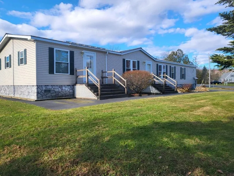 This 2002 double-wide mobile home is spacious, offering 3-4 bedrooms and 2.5 bathrooms. It features a wood-burning fireplace in the sitting room, perfect for cozy evenings. The kitchen comes fully applianced, and there is a large 39' x 15' back deck with a hot tub, ideal for outdoor entertaining. The primary bedroom includes a full bathroom with a new step-in Jacuzzi tub unit, providing a luxurious retreat. The home has undergone recent updates, including new windows, vinyl siding, and a metal roof, ensuring both functionality and aesthetics. Additional features include a full house generator, providing peace of mind during power outages, and a central air unit for cooling comfort in the summer. There is also a single-car garage used as a workshop, connected to a large two-car garage workshop with a full second floor, offering ample space for storage and projects. The property boasts a hot-topped driveway and sits on 2.2 acres of level land serviced by town water and sewer. The expansive land allows for potential opportunities, such as building single-family homes or multi-units, thanks to its current zoning classification. The sellers may also consider selling the home with a smaller portion of land if desired.