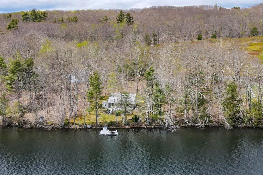 Discover a slice of paradise on this stunning property, offering the best of both worlds. Spanning 7 acres of picturesque land, this estate features 6.5 acres of elevated organic blueberry fields, offering panoramic views over Hobbs Pond. Additionally, enjoy a coveted 0.5-acre waterfront lot directly on the tranquil shores of Hobbs Pond. Nestled on the waterfront lot, a charming 2-bedroom, 1 full bath seasonal cottage beckons. Inside, an inviting open living room with a large fieldstone fireplace sets the scene for cozy gatherings. The updated kitchen boasts granite countertops and stainless steel appliances, perfect for culinary adventures. Outside, rolling lawns lead gently to the water's edge, where a large deck offers serene views of the pond. An aluminum dock system provides easy access for boating and fishing. Whether you're dreaming of a summer retreat or a waterfront escape, this...