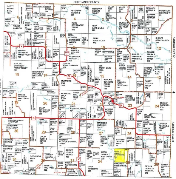 119 acres enrolled in WRP, 2 acres have been left out. Approximately 30 acres of woods. Excellent deer & turkey hunting with heavy timber along the West property line. Middle Fabius River runs through the Southwestern edge of site. $1600/year hunting lease income.