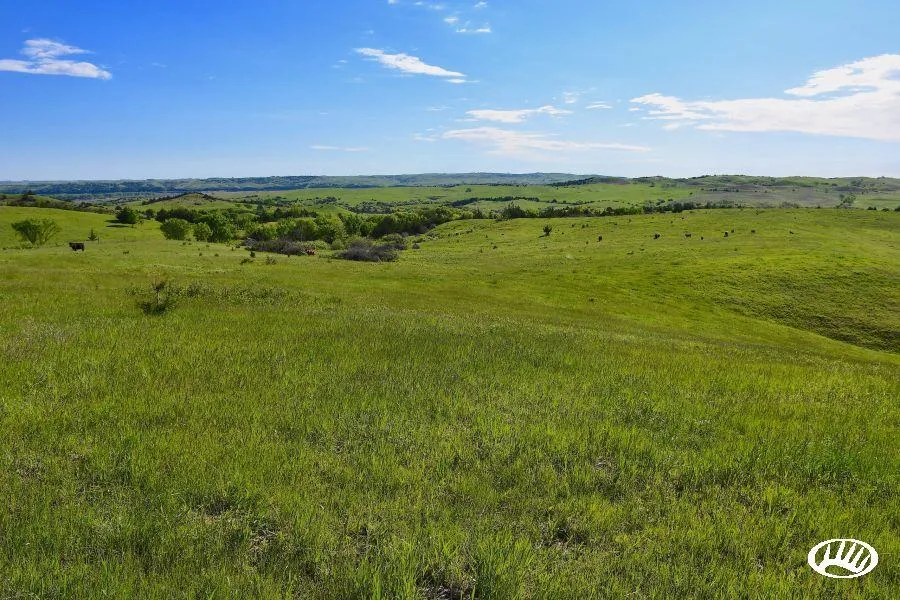 Here is a well-managed ranch with working facilities, hay, tillable, productive hard grass pastures, and great recreational opportunities. Lush rolling hills and tree covered valleys that are speckled with spring fed ponds set this ranch apart from many others. Harry Miller Creek twists and turns its way through the heart of the ranch for over a mile adding to the availability of fresh live water on this property. Cedar tree removal has been completed in several of the pastures and is an ongoing practice. The pastures are watered with multiple artesian wells and more than 11 dams of which several are stocked and ready to be fished! The terrain boasts great cover for the whitetail and mule deer that roam these hills in good numbers and with quality genetics. Turkeys, pheasants, doves, quail, and prairie chickens are also present on this property providing the wing shooter ample opportunit...