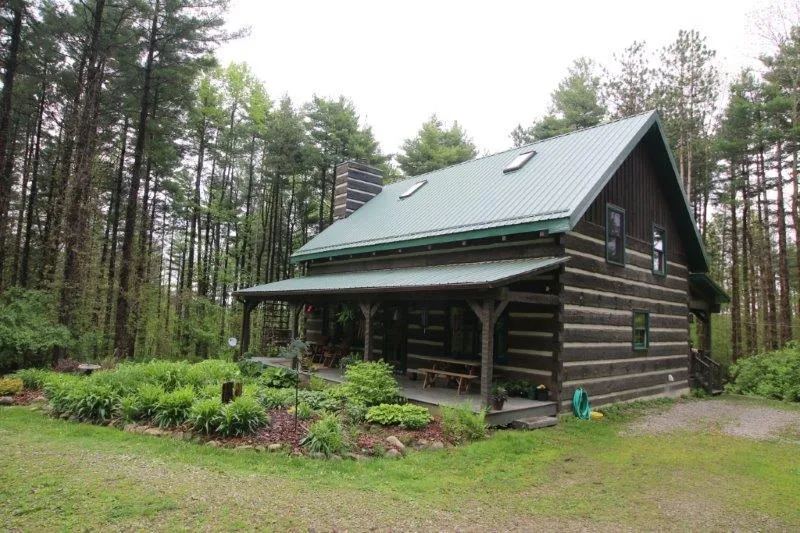 As close to PARADISE as you will find here...This Hand Hewn Log Home is located right in the middle of 17 acres of hardwoods and pines right on top of one of the highest points around. The home features wood pegged post and beam construction with 6" X 14" hand hewn heartwood pine logs. Additional features include a very open floor plan with the great room, kitchen, eating space and screened porch all opening into each other. Solid maple Amish built cabinets and granite throughout, slate and wood floors and soaring ceilings throughout are additional features. The original plans show a third bath and bedroom in what is now a 19'-8 X 13'-10 loft. Outside there is a circular drive to the 30' X 32' log sided outbuilding. The outbuilding loft is ideal for recreation room or apartment.