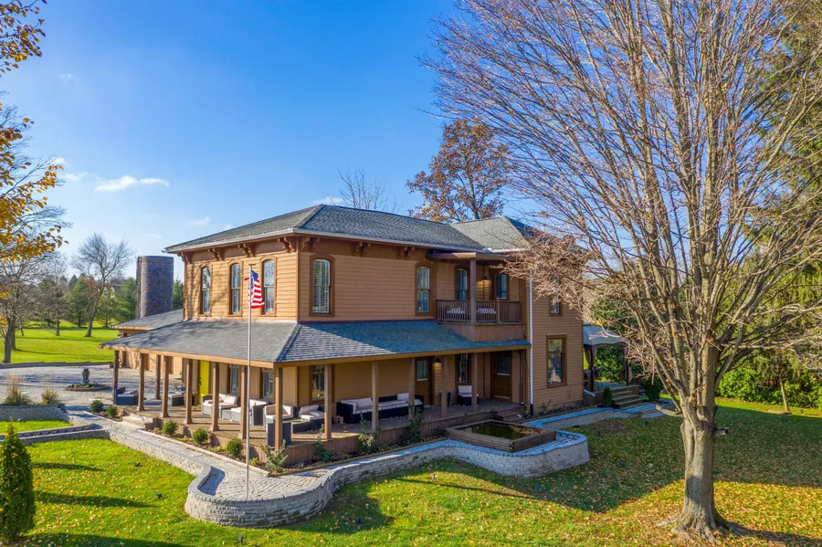 MOTIVATED SELLER! PRICE ADJUSTED!! Beautiful two-story Italianate home located just outside of historic downtown Mount Vernon, Ohio. Romantic wrap around porches and balconies with plenty room for entertaining or a quiet moment to yourself, overlooking two acres with shade trees and two Koi ponds. Stunning foyer, high ceilings, and a beautiful banister staircase. This home has three original fireplaces (decorative), long windows for natural lighting throughout. Four large bedrooms, two full baths with a bonus room off the owner's room for additional seating or nursery. First floor laundry/mud room, formal dining room, and a bonus theatre room with stadium recliner seating, projector, screen, popcorn and gumball machines. Extra arge kitchen, Large oversized three bay garage, work shop.