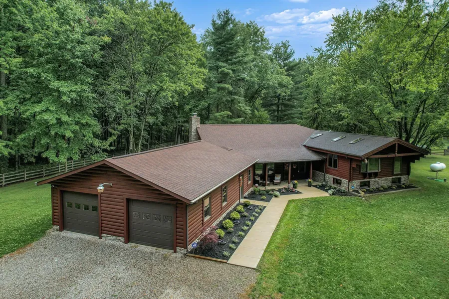 Luxury, Indulgence & Convenience! Stunning custom-built home on scenic 11.26 acres in central Ohio. Conveniently located to Polaris, Sunbury and New Albany. This captivating 4,685 sq. ft. log home has a panoramic backdrop of lush pastures, mature woods, large bass stocked pond, & Amish built barn. This gem features cathedral GREAT Room w/ tongue & groove ceiling, 2-story stone fireplace, loft & hardwood floors reclaimed from 180-yr-old barn. The home boast an open floor plan w/expansive windows that allows for natural beauty to be brought indoors from every angle. Kitchen has hickory cabinets, granite, & exposed beamed ceilings. Cathedral sunroom w/heated stamped concrete floors. OVERSIZED garage w/large doors. Office /den. Amish-built barn(32x48) w/concrete flrs, 2-levels, multiple doors.