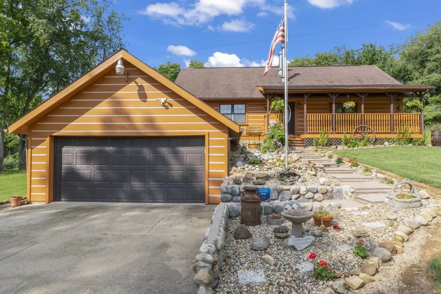 Beautiful log home in Apple Valley with double lots to equal a half acre. This picturesque setting welcomes you into this 4 bedroom 2 bath home. Cozy living room with stone fireplace. Gourmet kitchen with granite countertops and appliance filled kitchen. Large master suite on main level. Private loft bedroom on upper level. Lower level walkout features spacious family room, full bath and 4th bedroom. Over 2500 square feet of living space. Oversized 2 car garage with large storage loft overhead. 10 x 16 shed that can used for storage or your own she/he shed. Spend your days relaxing on the covered front deck and entertain your friends on the back covered deck. Welcome Home!