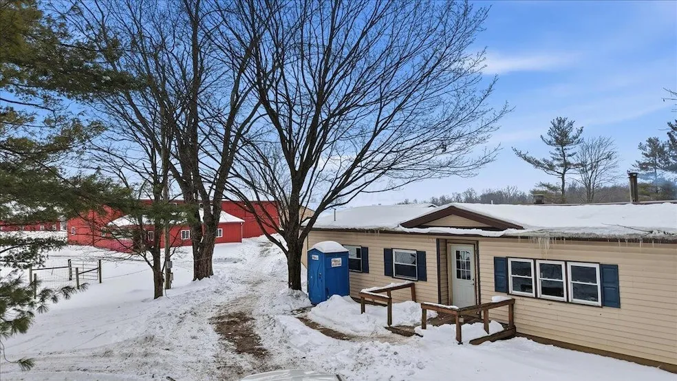 Escape to this serene, picturesque property that spans over four acres of lush landscape. This charming three-bedroom, two-bath ranch offers a cozy and inviting atmosphere. Currently occupied without electric and hvac, this home is ideal for homesteaders or those wanting to be off grid. The centrally located wood burning stove heats the home and doubles as the oven/cooktop. The property includes a detached two car garage, large barn and an additional outbuilding for all your storage and livestock needs. A true haven for those seeking a blend of comfort and countryside charm.