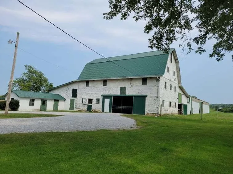 14 acre mini farm. 60x120 indoor arena. Tack rm & washroom. Barn Gambrel style newer roof, 9 box stalls, lg hayloft & milking parlor. 12 acres of pasture: 3 pastures w/new wood posts, electrobraid-type fence & gates. Huge 44x96 workshop w/concrete floor & water. 2 car detached garage w/addtl attic storage. New well in 2021, approx 50 gal a min. Brick home w/3 fireplaces, whole house generator, elec & natural gas to house, hot water heat. Cozy family rm w/cedar walls, cathedral ceiling & stone wall fireplace, newer laminate fl. Formal DR w/built in china cabinet, updated fl. Spacious LR w/stone fireplace. Main fl master. Huge upstairs BR plus 2 more bdrms (4 total), 2 full baths. LL rec rm w/fireplace. Newer lines to tank in leachfiled. Home needs some cosmetic updates. 35 min to New Alban