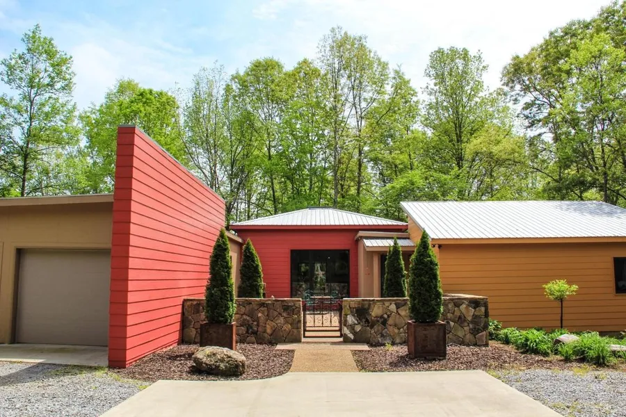 Live with nature when you choose this European contemporary 1-level home nestled in a wooded setting. The house is designed with open entertaining spaces and tons of windows for natural light. From the time you enter the antique French gate into the stone courtyard, you'll be charmed by the fountain and the curb appeal of this most unique home. The home has no steps which makes it accessible to all people. A gourmet kitchen has every special feature a cook could want with even a sliding wall to conceal the kitchen when entertaining. Put this house on your ''must see'' list! Quality abounds!!