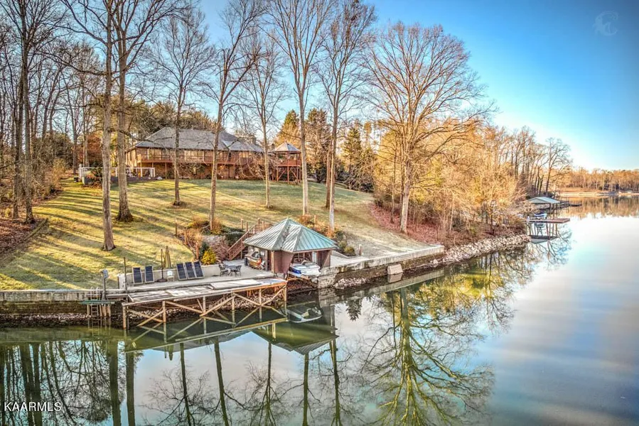 Fort Loudon private oasis located in desirable gated community of Rivendell. This Gorgeous Lakefront Home is on the main channel with 170 ft. of lake frontage. This all brick basement ranch home is situated on a premiere lot located in the cul-de-sac. Welcome your guest with the circle drive and expansive foyer that leads to the towering great room where you find amazing handcrafted tongue and groove vaulted ceilings with a grand gas/wood burning fireplace and amazing lake views. Imagine the fabulous entertaining opportunities both inside & outside on the spacious decks and gazebo overlooking the peaceful lake views. The spacious gourmet eat-in kitchen offers ample storage, high end appliances, a breakfast area and oversized windows for fabulous lake views. Beautiful hardwood floors, two