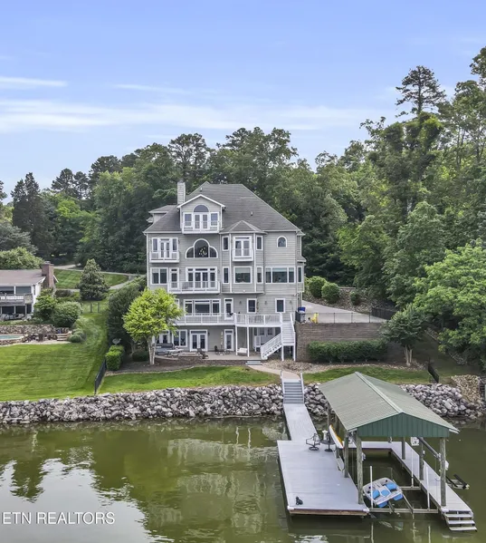 Welcome to one of West Knoxville's most spectacular lakefront estates, offering over 10,000 square feet of luxurious living space. This unrestricted home (no HOA) could be used as a short-term rental or primary residence. With its southwest-facing orientation, this home is absolutely flowing with natural light, and showcases some of the most stunning lake views in Knoxville. Featuring 9 bedrooms and 9.5 bathrooms, nearly every bedroom includes its own en suite bath for ultimate comfort and privacy. The main level boasts a soaring great room with breathtaking views, a see-through gas fireplace that splits entertaining areas that flows beautifully into the gourmet kitchen, complete with high-end appliances, three oversized pantries, a formal dining room, executive office (or main level bedroom), and a sunroom/office that captures breathtaking views of the water. The second floor hosts a beautiful primary suite with luxurious bath, walk-in double shower, jetted soaking tub, dual vanities, and dual walk-in closets, along with three additional bedrooms with en suite baths. The top floor offers a spacious recreation area, media room, and workout space, while the walk-out basement is perfect for entertaining with its own kitchen area, wet bar, temperature-controlled wine room, and additional living spaces. A dedicated in-law suite with a private entrance makes multi-generational living seamless. Step outside to enjoy unforgettable sunsets from the custom stone patio with outdoor fireplace, all set against the tranquil backdrop of the lake. Enjoy the ultimate lakefront lifestyle with boating, fishing, and jet skiing right from your backyard- Take an evening cruise to one of the many vibrant lakefront restaurants, even become part the iconic Vol Navy on game days for a true Tennessee tradition. This home is a rare combination of elegance, functionality, and one-of-a-kind views-truly a must-see.