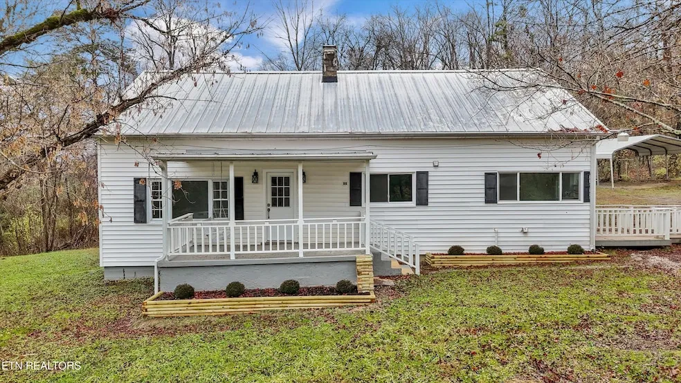 Back on the market after recently completed renovations, this charming 1945, 4-bedroom, 2-bath home sits on almost 4 acres and offers privacy, space, and incredible potential of additional home/rental sites. The interior has been beautifully updated with new flooring, fresh paint, modern lighting, and a fully remodeled kitchen featuring new cabinetry, granite countertops, subway-tile backsplash, stainless appliances, and a large window overlooking the wooded property. There is a primary bedroom with en suite bathroom on the main level with split second bedroom and bathroom. The spacious and comfortable living area offers views of your beautiful front porch and acreage. Upstairs are two additional bedrooms with enormous closets and storage area. The covered front porch is perfect for sippin' sweet tea on the front porch swing enjoying the peaceful surroundings. Additional updates include HVAC, front porch railings, plumbing, electrical, AC upstairs rooms and all new windows. Outside, the land shines with a 1000sqft garage/workshop, carport, storage shed/small barn with NO Restrictions. Bring the chickens and/or minifarm! Wildlife is abundant with deer and turkeys frequently visiting the property. Plenty of room for a pool, playset or building a treehouse. There is an additional cleared land area for additional homes/rental sites, a large garden area, and/or barn/workshop area with public water, electric, AND public sewer, giving you room for expansion, investment opportunities, or multi-generational living all while the main home remains private. With acreage, updates, and usable infrastructure, this property offers both move-in-ready comfort and long-term potential. Country living while being close to stores & downtown Knoxville. Don't miss seeing this incredible home and property! All information deemed reliable but Buyer/Buyers agent to verify.