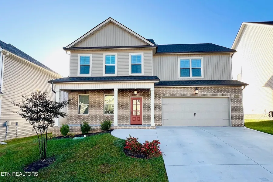 Located only a 15 min drive to Downtown Knoxville or Sevierville/I-40 exit, this craftsman home features designer lighting, granite wrapped fireplace, covered back porch and LVP floors throughout. The Kitchen has granite tops, island w/ seating on 2 sides, soft close drawers, stainless appliances, dining area, & picture window above the sink. Just off the kitchen is a large covered back porch, perfect for eating outside and entertaining. Pass through your traditional mudroom with bead board & coat hooks to access the powder room, laundry, & 2-car garage. Upstairs, the Master Suite has a vaulted ceiling and a cozy nook, perfect for a sitting area. Master bath features a double vanity, toilet room, tile and glass shower, and walk-in closet. Bonus room/loft separates the Master from 2 more bedrooms, both with walk-in closets, and a Full bath.
