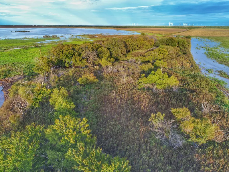 Waterfowl Hunting: Absolutely phenomenal waterfowl hunting land in the Wetland Reserve Program (WRP). With approximately 3,000 acres of drainage area, the lake's level will vary with rainfall. When full it is about 250 surface acres (3.5 feet deep at the most) and in the hot summer months, it actually shrinks to just a mud hole and allows vegetation such as smartweed and millet to grow. The lake is fed by runoff from surrounding fields, as well as the county road ditches. Vegetation throughout the Scott Lake includes tall Switch grass, Side Oats Grama, Plain Bristle grass, Klein grass, B. Dahl and Bluestem. This ranch is located in an area of abundant surface water, lots of grain crops, and in the Central Flyway zone. In the winter months, waterfowl by the thousands are roosting on the lake. Lesser Canadian Geese are the predominant waterfowl from November through February, but ducks including Teal, Pintails, Widgeons, Mallards, and Gadwalls are also common to Scott Lake. There are many vantage points around and out in Scott Lake that allow multiple hunters and different hunting setups. Scott Lake also has no hunting pressure from the neighboring properties and this quality is nearly impossible to find in todays hunting world.