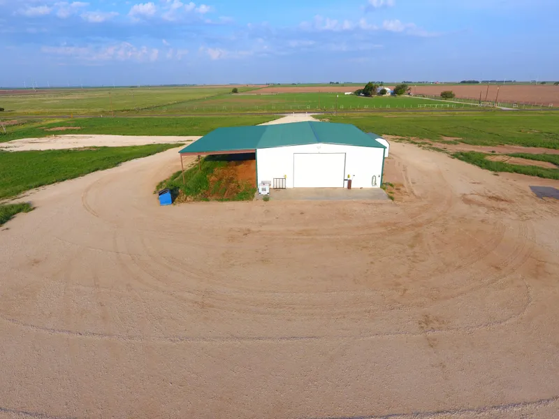 This barn was built in 2012 and features a 75' by 50' Barn with attached 30' overhang.