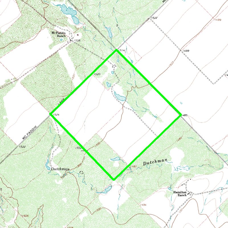 Dutchman Creek cuts the south corner of this section, and a one+ acre water tank regularly catches runoff there. There are four other tanks on the property, two of which are also over an acre in size. The ranch has a waterway system running through the middle that channels rain to these different tanks. There are also numerous "traps", or sloughs, on the edge of the fields and pastures, which could be dug out to hold more water too.