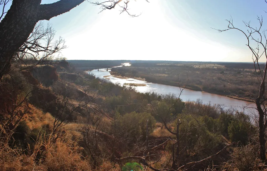 The property sits on the east side of the Brazos River, where Highway 222 crosses the river. It is primarily top land, with a general slope towards the north. Several draws and washes transverse the land, and these have been utilized to feed a water tank in the pasture on the east side. A 40 bluff runs along the side of the river for about 4/10th of a mile, providing some really nice views up and down the river valley. The Brazos River is considered to be live water and runs year around.