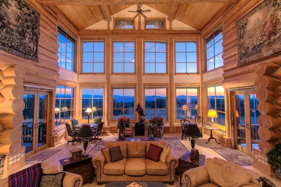 POWDERHORN BAY 800 ACRE CATTLE RANCH - Reminds you of the ''Ponderosa'' log home built with old growth trees from Yellowstone Park with over 10,000 sq. ft., 13 bedrooms, perfect family retreat, dude ranch, or corporate retreat. A piece of the old west bordering on National Forest. 2500' guest home and 1900' settlers cabin plus many barns and shops. Property is entirely fenced. Coeur d'Alene Lakeviews and borders Lake Coeur d'Alene. One of a kind in North Idaho. Comes furnished.