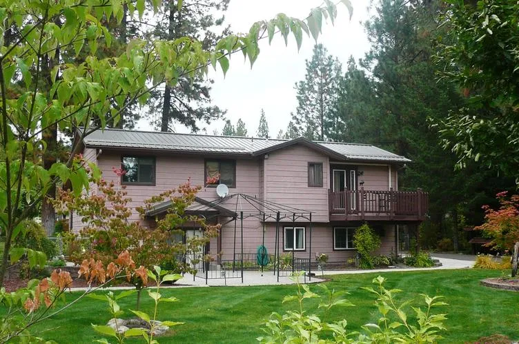 Shady 1 Acre Shangri-La. Impeccably landscaped woodland home trimmed with split-rail fencing An idyllic setting in a friendly neighborhood. This charmer has a very open 1952sq ft of living space. California-split floor plan accommodates 3 generous upstairs bedrooms, plus one bedroom on the lower level. An open staircase overlooks the 2 story living room with wood-burning bricked fireplace hearth. Well-outfitted kitchen is the true heart of this home, boasting antique lighting & pantry. Family & friends gather around the Breakfast Bar to keep the cook company. Spacious Master Suite boasts a private deck, shaded by a Sunset Awning, & perched above the back yard. This private retreat is a verdant expanse of trademark North Idaho, meticulously landscaped with concrete edging and native vegetation. Pine, dogwood & cherry trees; green grass & birdhouses make a we...