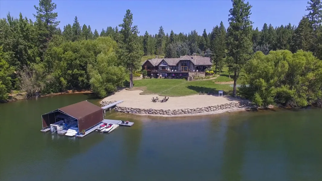 Hayden Lake - Gem shores - Architectural masterpiece with over 8600 sq.ft. True North Idaho Family Retreat. Extraordinary attention to detail, walnut floors, wood beams, wood burning fireplaces, billiard room, walk out the ''lake level'' to lawn and 420' of sandy beach. 5.8 acres with private gated entry. Also includes fully furnished guest quarters with kitchen and laundry.