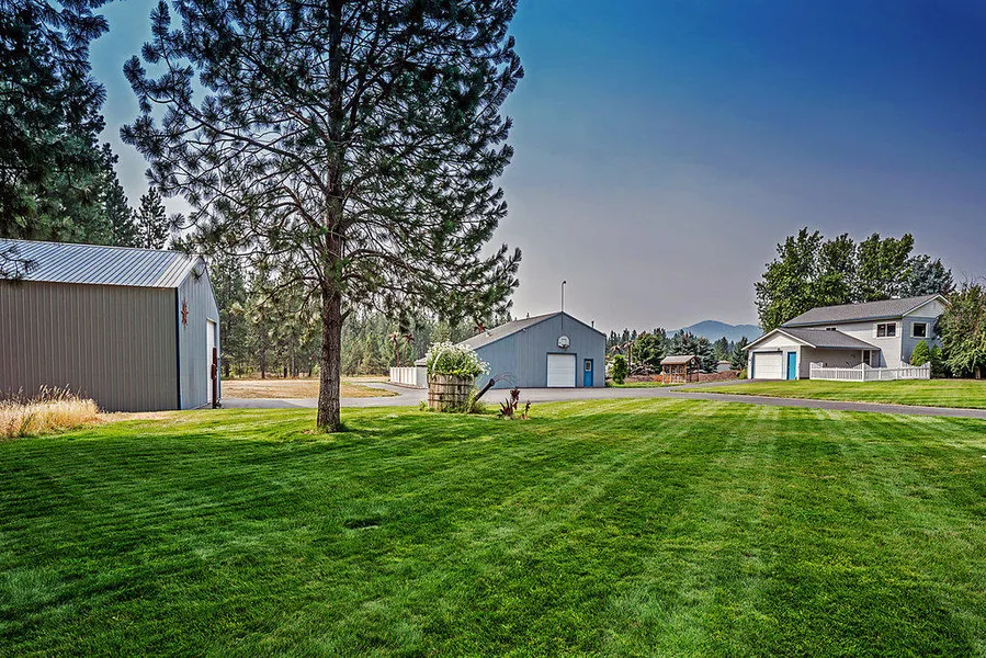 Two Shops come with this home! Great Horse Property! 4.8 acres with irrigated back pasture! 4 bedroom 2 bath home with country fresh kitchen, separate family room, wrap around deck with mountain views, 2 SHOPS and, RV parking. Stick built heated 30x40 shop with wood stove, cabinets, rollup doors to out- door entertaining on the Tiki torch lit deck of a heated salt water pool, volleyball and swing set for the kiddos, huge 40x60 shop. All on 4.8 nicely landscaped acres with a mix of pine and palm trees, big sky views and lots of fun!