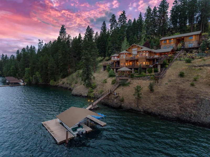 RARE CLOSE IN LAKEFRONT ESTATE.YEAR AROUND EASY ACCESS TO PRIVATE, GATED LOG HOME ON A FULL ACRE WITH 260 OF PRIME, DEEP, HAYDEN WATERFRONT, SUPERBLY DESIGNED AND MAINTAINED TO PERFECTION. OPEN GOURMET KITCHEN, COVERED OUTDOOR SUMMER KITCHEN AND DINING. PERFECT FOR ENTERTAINING OR LARGE FAMILY GATHERINGS. STUNNING LOG CONSTRUCTION, CHERRY WOODWORK, 4BED-4.5 BATH WITH STATELY OFFICE.WATERSIDE GAZEBO, OVERSIZE DOUBLE BOAT SLIP, SPECTACULAR LANDSCAPE AND WATERFALL. BONUS BUNKHOUSE WITH FULL BATH AND SLEEPS FOUR. 500 BOTTLE WINE CELLAR, HOT TUB, EMERGENCY ELEVATOR AND HEATED DRIVE. A MUST SEE FOR THE ASTUTE BUYER, A RARE FIND INDEED!