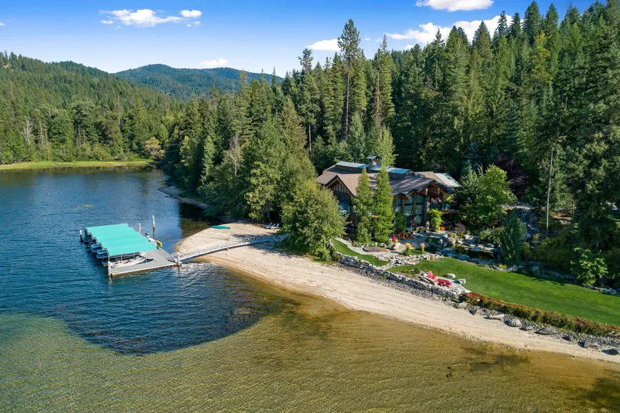 HAYDEN LAKE PRIVATE RESERVE - Once in a lifetime opportunity. Largest privately owned estate on the entire lake - Imagine 1,697 feet of prime waterfront, lawn to water's edge and sandy beach, 108 acres in total backing up to National Forest. Beautiful private gated entry with private road over a wooden bridge to main residence, which is ''All'' North Idaho Architecture - Craftsman masterpiece. 6750 total square feet, with gourmet kitchen which includes a La Cornue range & Miele Steam Oven, outside living area includes fire pit, hot tub, pond and level to water's edge, very natural look and feel. In addition, there are 2 separate waterfront guest homes. Also included are 3 boat docks and a caretakers residence. Call for complete package of amenities.