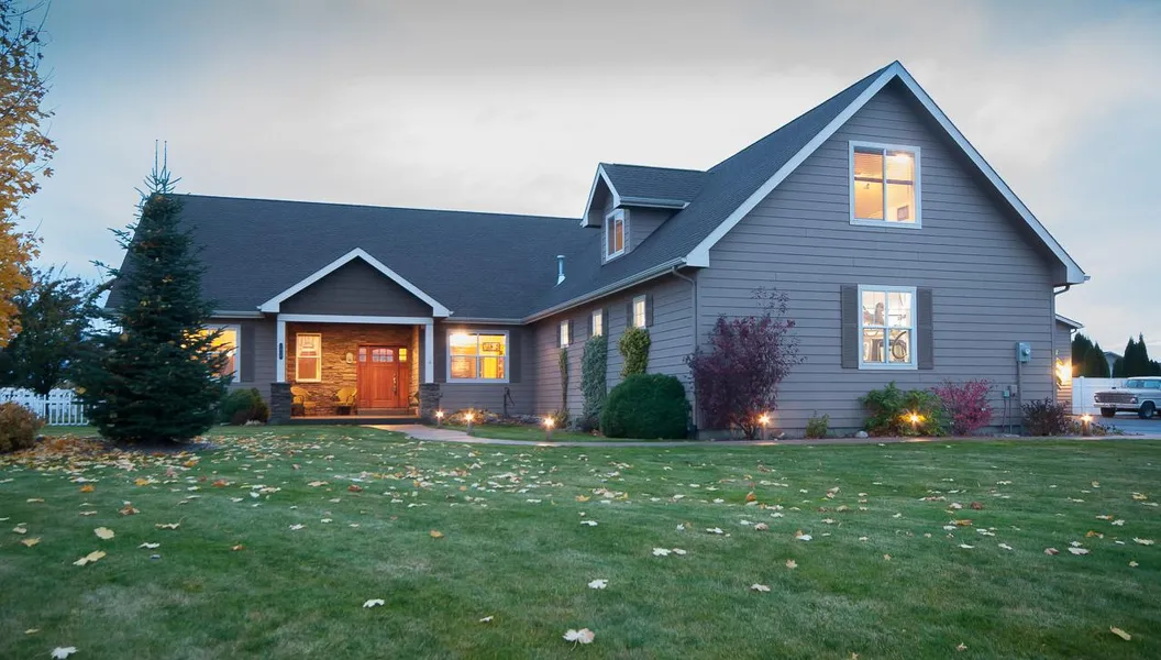 Gorgeous luxury rancher seated on an acre in prestigious ''The Meadows''. This attractive home features lovely hardwood floors throughout the kitchen, formal dining room, great room and master bedroom. The Great Room is spacious with striking rocked gas fireplace and built-in shelves. Gourmet Kitchen with granite and tile counter tops, stainless steel appliances, pantry and breakfast bar. Elegant master bedroom with room for a sitting area and a lovely tiled master bath with dual lavs, garden tub and walk-in shower. Upstairs includes bedroom, family room & bathroom. Outdoor amenities include 46x52 shop with covered patio, a storage shed, covered deck, elegant landscaping with water feature & fire pit. Fenced pasture, barn, automatic heated water system, gated access to horse arena.