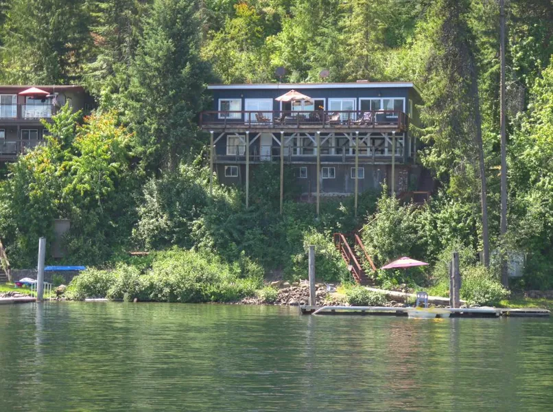 Coeur d'Alene Lake, Wildwood Park/Brown's bay area, 75'frontage, 4 bdrms, 2 bath (plus ruffed in bath down) 1890 sq. ft., rancher with daylight basement, parking area, boat dock. Cabin has been remodeled all ready to go.