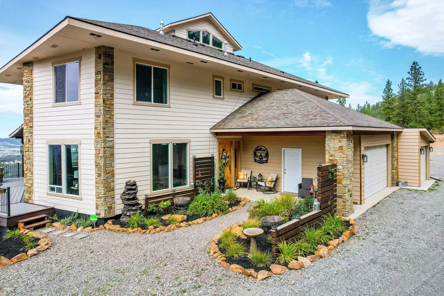 This turnkey, luxury oasis is a one-of-a-kind opportunity for you and your family to escape the hustle, but still be close to town. Throughout the private 20 acres and 7,500 sq luxury home nestled behind 2 gates, you will enjoy breath taking western views, unfiltered stars, abundance of wildlife and crisp mountain air. Views that stretch from Post Falls across the valley through Newman Lake, Spokane River all the way to the Spokane Airport. Sunsets are world class! On the main level you will find a spacious, luxurious kitchen with double sinks, a commercial refrigerator, walk-in pantry, mud room & 3 car garage yield the perfect family gathering space. The covered outside patio with piped in Wi-Fi speakers provides the ambiance for relaxation. Downstairs in the daylight walk-out basement, enjoy a dedicated mother in-law suite with a full kitchen, full bath, stadium seating theater room, d...