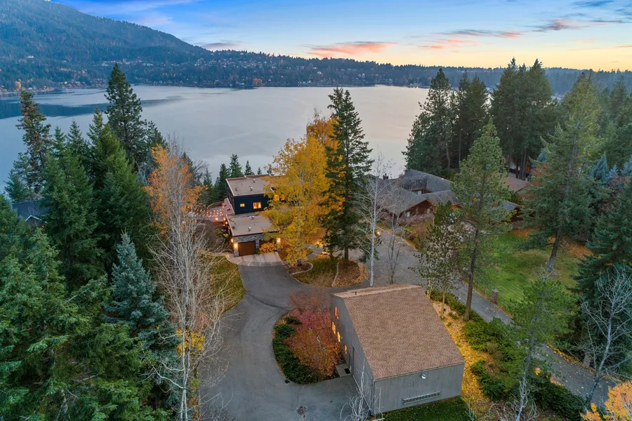 Welcome to Year-Round Stunning Point Hayden- boasting an update stylish contemporary WATERFRONT home and GUEST HOME plus SHOP on a rare 1.22 Acres! Designed by renowned architect, captivating 180 degree Lake Views with southern exposure and sunset views. 4 Bedrooms, 3.5 Bath 4404 SF in main home and 2 Bedroom, 1 Bath (1180SF) GUEST HOUSE with SHOP! Private Boat DOCK w LIFT with ATV included to get to your PRIVATE DOCK, new roof, new paint, and more! Enough room for a sport court, RV, and so much more! Come live the waterfront life!