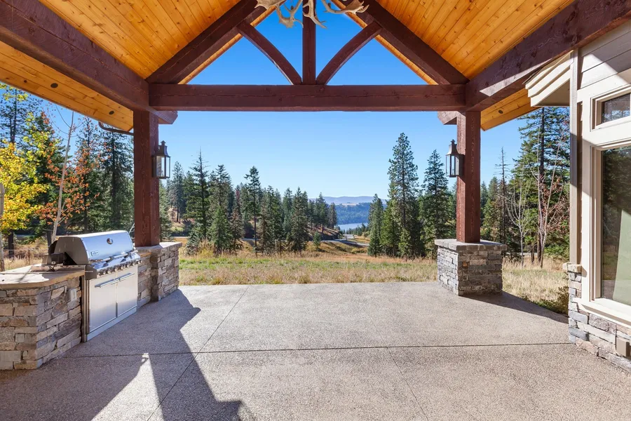 Extraordinary Lake Coeur d'Alene secondary waterfront home with 24' BOAT SLIP in the community marina with sandy beach. Boasting serene Lake Views situated on 19+ wooded acres in premier private gated community, The Ridge at Sun Up Bay. Masterfully built in 2017, this 3 bed, 3.5 bath, 3782 Sq Ft refined single level beauty looks out to Sun Up Bay on Lake CdA with room for a SHOP! Custom built with fine finishes throughout affords tranquil & elegant living for the discerning luxury home shopper. Oversized heated 4-car garage w/10' RV door, abundant storage, dog kennel on side yard & tool shed. Open flow layout w/durable & timeless elements to inspire admiration for generations to come. Live life to the fullest in North Idaho!