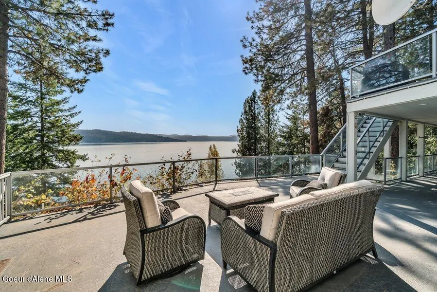 Lake Coeur d' Alene Waterfront property with 150' of prime water frontage & Stunning Views throughout the home! Lucrative AIRBNB! Just outside of Rockford Bay & steps away from the prestigious Black Rock golf community. Nestled on a 1 acre lot with a 4,200 sqft home AND 560 sqft guest house w/ 2 bed, 1 bath, kitchenette & attached garage! Huge paved driveway, detached 3 car garage & separate RV Parking. Incredible views from the 2 decks off main house, perfect for entertaining or just taking it all in. Easy water access via the Tram or walking path. Dock w/ new gangway. Ample shoreline for lounging or a cabana! Water views throughout home. Main floor living, Vaulted ceilings & picture windows. Great natural light! Main floor master en-suite w/ deck access, walk in closet & laundry. Multiple family/living rooms throughout house. Large secondary bedrooms with murphy beds & outside access.