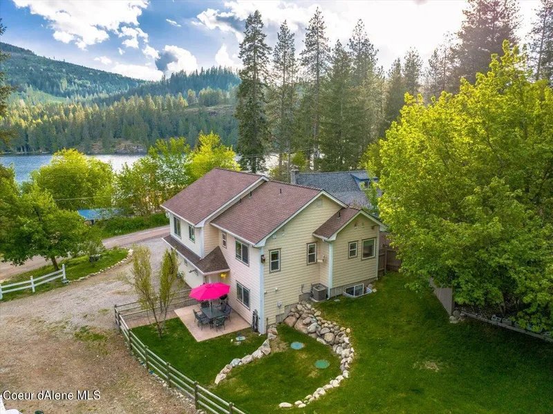 Custom Home at Pristine Twin Lakes with Lake and Dock Access. Live the Lake life all year!! A North Idaho Recreational Gem with fishing,,boating,kayaking and hiking trails nearby. Large windows with gorgeous views,open concept Living area with Gas Rock Fireplace. Kitchen has Granite Counters with large Island. Main floor Master Suite with walk in shower and closet. Main floor Laundry Room. 2 more Bedrooms and Bath in walk out lower level. Garage is heated and has extra storage room. Backyard is private with shed for kayaks etc. Fruit trees, Dog run area fenced. Sprinkler system and Central Air. Year round living. 5 mins to Twin Lakes Golf Club.