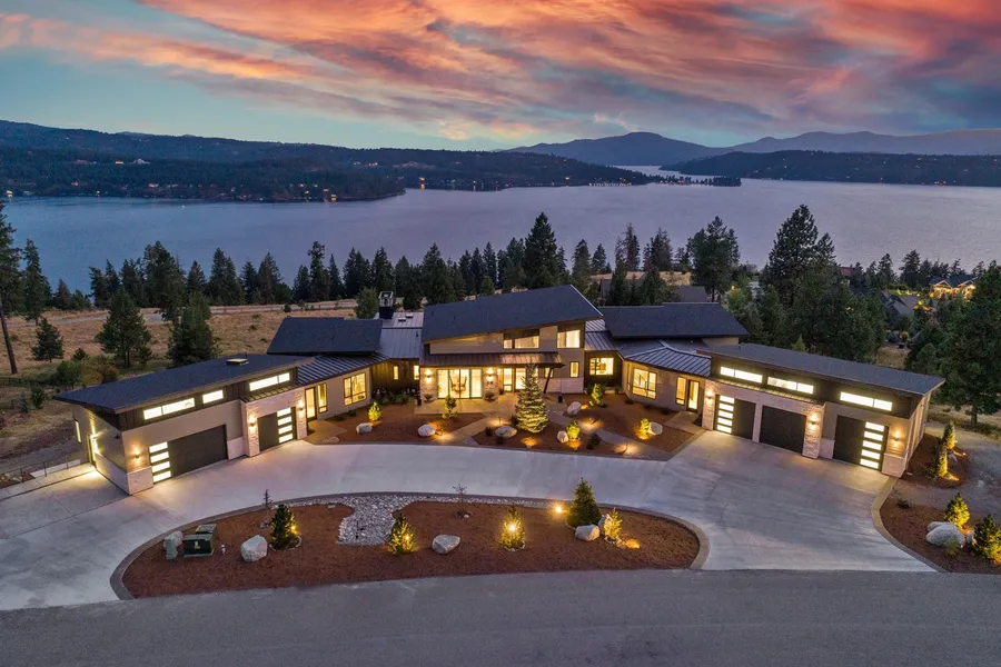 One-of-a-Kind Spectacular Mountain Contemporary Masterpiece! Just completed in 2022, inspired design where art and nature converge accentuating the unsurpassed 180 degree panoramic LAKE VIEWS in the coveted gated community of Syringa Heights. Boasting 8600+ SF with easy main floor living and over 2400 sf of heated decks extending your entertainment living outdoors. Two masters on the main level - total 5 bedrooms, 6.5 baths, 6 CAR garages including RV wing, exercise room, outdoor kitchen, dog wash station and more. Control 4 Smart home with outstanding craftsmanship. Walkout lower level with full kitchen, laundry, separate entrance for potential multi-generational living. A legacy property, every feature you can think of and ones you haven't, heated driveway and patios, radiant flooring, soaring ceilings, amazing sunsets, luxurious details. Relaxing, restoring, captivating and simply mag...