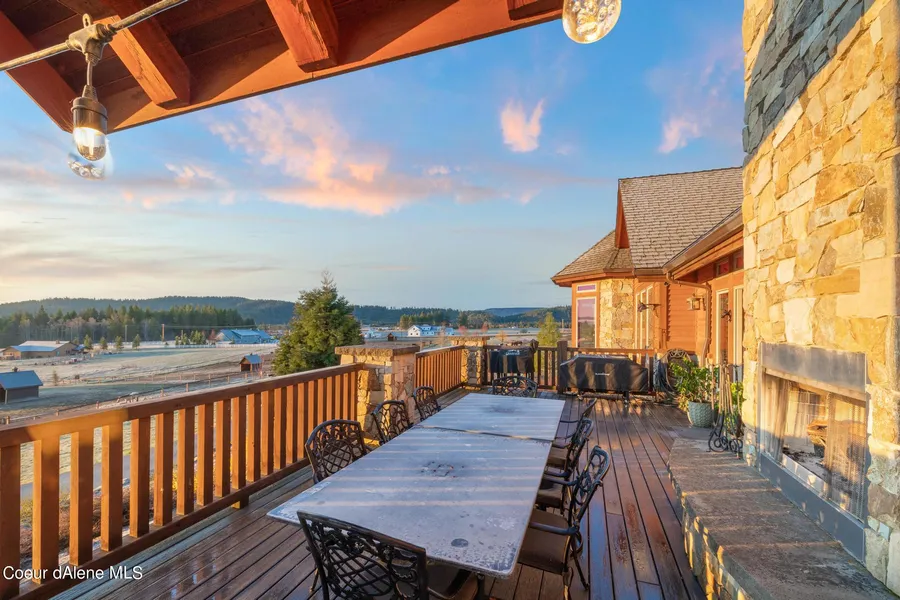 Truly one of a kind Multi-Generational property nestled in the hills of Coeur d'Alene and only minutes to downtown. Sitting on 13.18 usable acres, this stunning home is the entertainer's dream. Relax under the covered, grand entrance while enjoying the magnificent sunrises and panoramic views. The gourmet kitchen boasts a remarkable 5ft x 9ft island that is perfect for food prep, dining or simply having morning coffee. 5 suites on the main floor provide plenty of room for family or friends. The finished basement is complete with a bar and perfect for those late night parties. Movie night is a must in your own personal theater room. Soaring ceilings, solid 8' wood doors, high end custom tile showers and separate living quarters are sure to impress! And, who doesn't want their very own outdoor sports bar silo and a 48' x 60' shop?! Tranquility awaits as you live in your own private, luxurious retreat and enjoy the proximity to everything Coeur d'Alene has to offer.