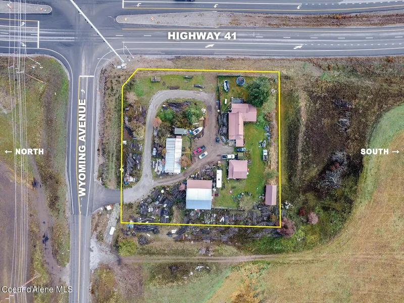 Rare corner lot in HWY 41 in the path of commercial growth. The lot includes a well with the oldest water rights on the prairie (1904). Livable home on 1.51 acres with many outbuildings. 3 phase power