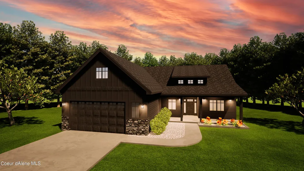 Come and enjoy the breathtaking views of the mountains at Verte Glenn! This location places you just minutes away from parks, golf courses, outdoor recreational areas, retail outlets, restaurants, highways and interstates, and much more. This exquisite 3-bed, 2-bath rancher is currently being built, and it offers main floor living, a large bonus room above the 2-car attached garage, and an enormous shop that was previously built. The open concept floor plan features a vaulted great room and kitchen that measures over 13 feet, with 9-foot ceilings in all 3 bedrooms, dining room, and office. The gourmet kitchen comes with a 12-foot-long island and eating bar, topped with granite or quartz, a stainless steel appliance package, soft-close custom cabinetry, and a walk-in pantry. The main living areas boast luxury vinyl plank flooring, while the carpeted areas have an extra plush carpet pad. The primary suite features a private bath, dual vanity sinks, a walk-in closet, a linen closet, and full tile walls in the shower. Other interior features include an oversized trim package and solid core doors throughout, personalized electrical and lighting package, smart panel pre-wiring for Coax and Cat5 locations, and granite/quartz countertops and backsplash in bathrooms. The exterior features include a covered front porch and entryway, a stained and lacquered main entry door with several window options, fiber cement lap siding with timber accents, full rain gutters, a patio in the backyard off the great room, and stone wainscot at the front of the garage.